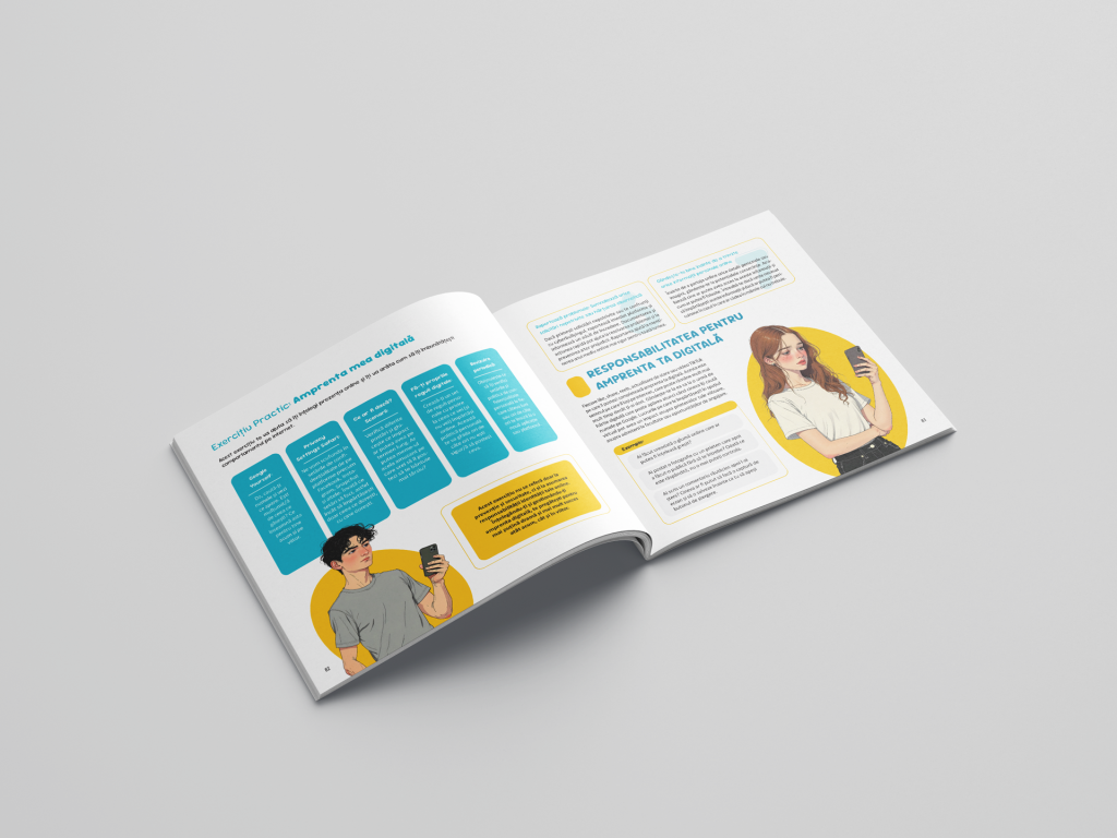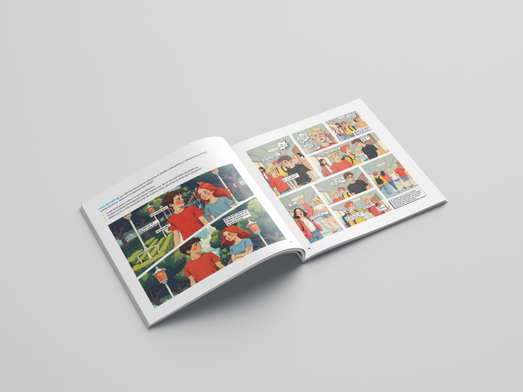 „Complicații sau relații?” e un ghid sincer pentru adolescenți de 12+ despre relații, limite și siguranță. Am transformat conținutul într-un instrument empatic și accesibil, care a fost redactat și machetat după principii euristice, cu feedback direct de la adolescenți prin Consiliul Consultativ al Copiilor CNPAC. Benzile desenate aduc în față situații reale, fără filtre, dar cu grijă. Prevenirea abuzului începe cu înțelegerea. Iar designul e parte din soluție.